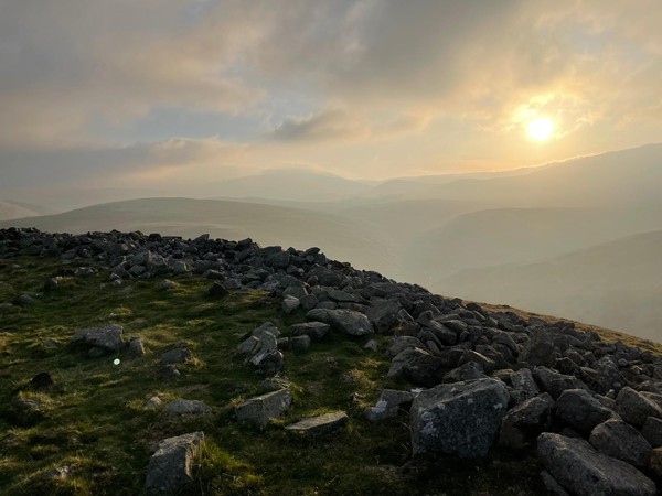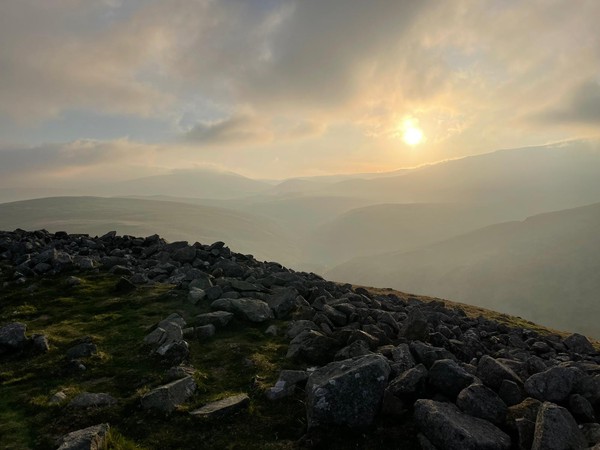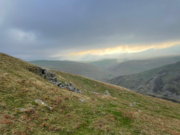 Due to the recent spell of warm weather the usually boggy ground on this section was remarkably dry and we made decent progress. When sheltered from the wind it was pretty warm, however when exposed on the tops and ridges we struggled to stay on our feet at times battling gusts of up to 60mph. The views made up for it however.